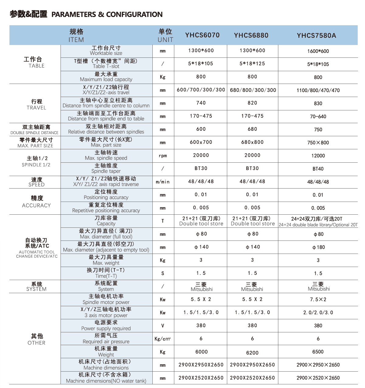 高速双主轴钻攻中心YHCS系列高速双主轴钻攻中心YHCS系列